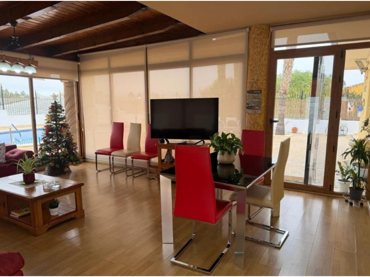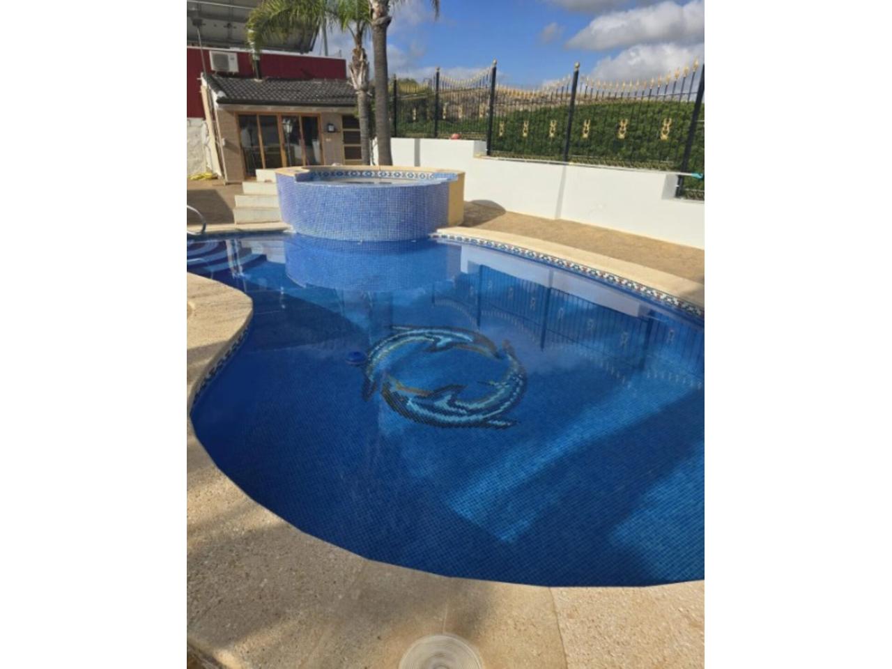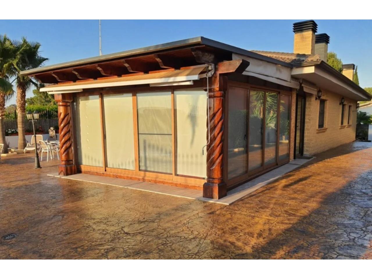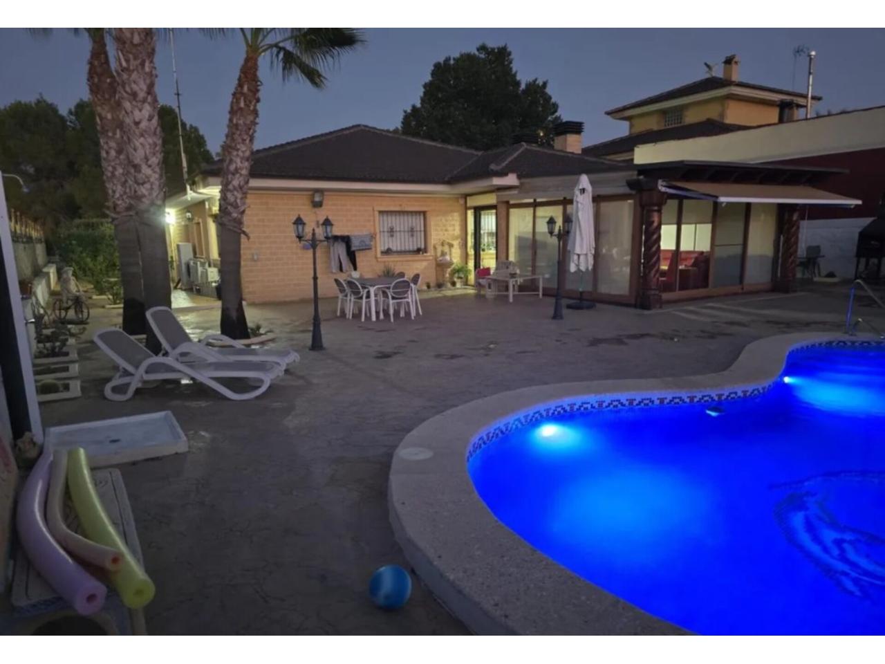 • Descripción Superficie total 311 m², chalet superficie solar 1000 m², superficie útil 311 m², hab. individuales: 4, habitaciones dobles: 1, 3 baños, antigüedad entre 20 y 30 años, asfaltado, carpintería exterior (aluminio), estado conservación: buen estado, garaje, jardín (propio), piscina (propia), soleado, terraza, suelos: gres, urbanizado (los conejos), alumbrado, patio.